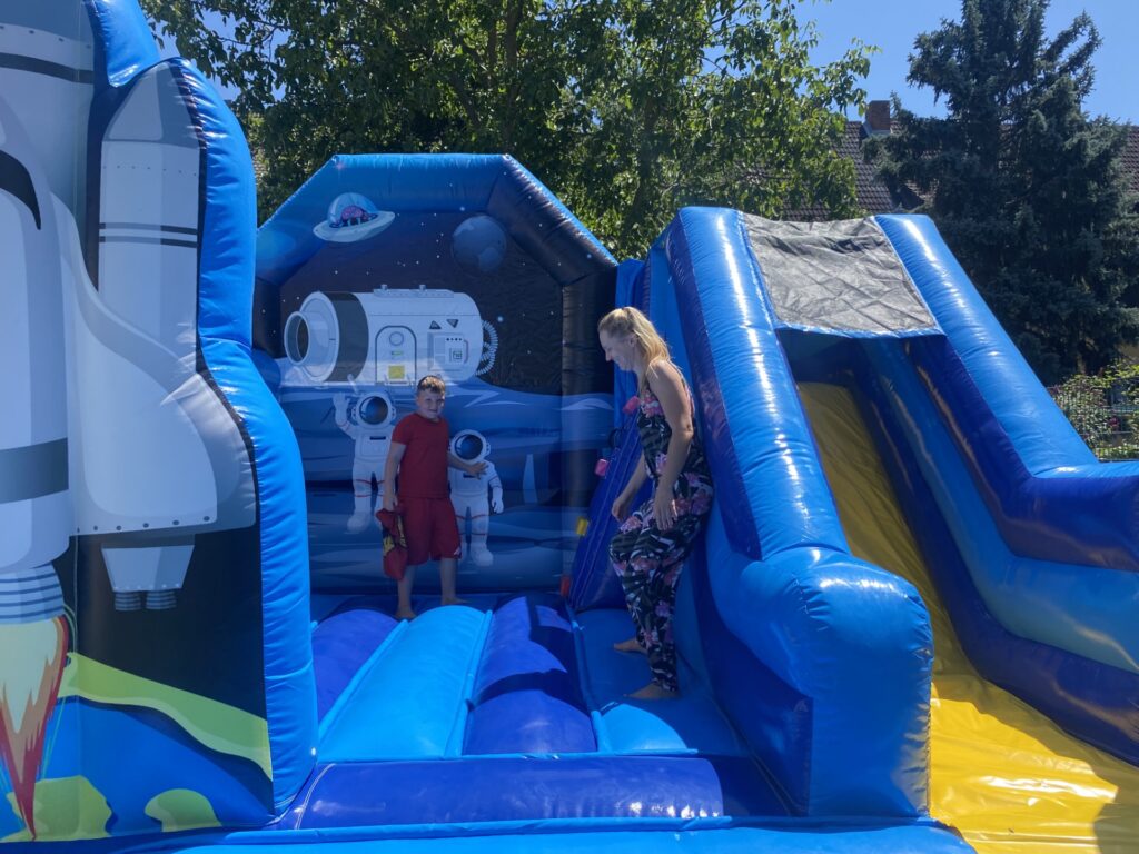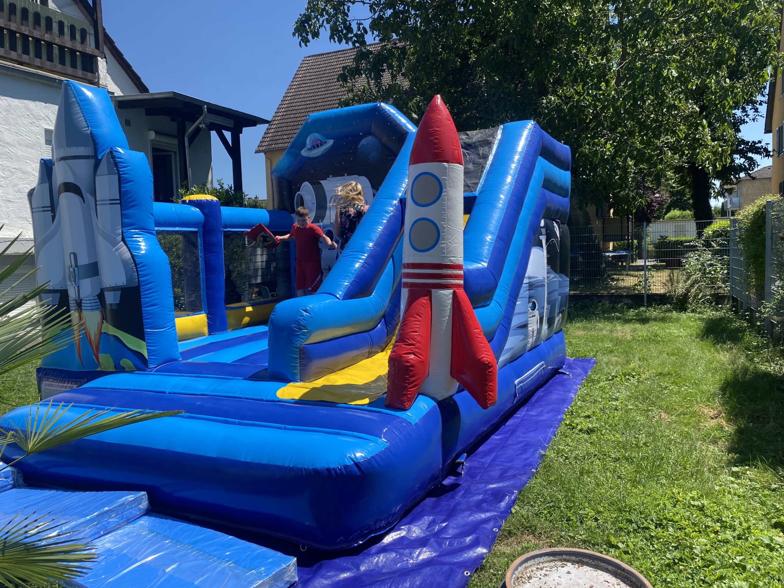 Bereit zum Abheben? Unsere spektakuläre Weltraum-Hüpfburg mit Rutsche entführt kleine Astronauten auf eine galaktische Abenteuerreise! Mit liebevollen Details wie Raketen, Raumfähren und spacigen Farben sorgt sie für leuchtende Kinderaugen und Stundenlangen Hüpfspaß